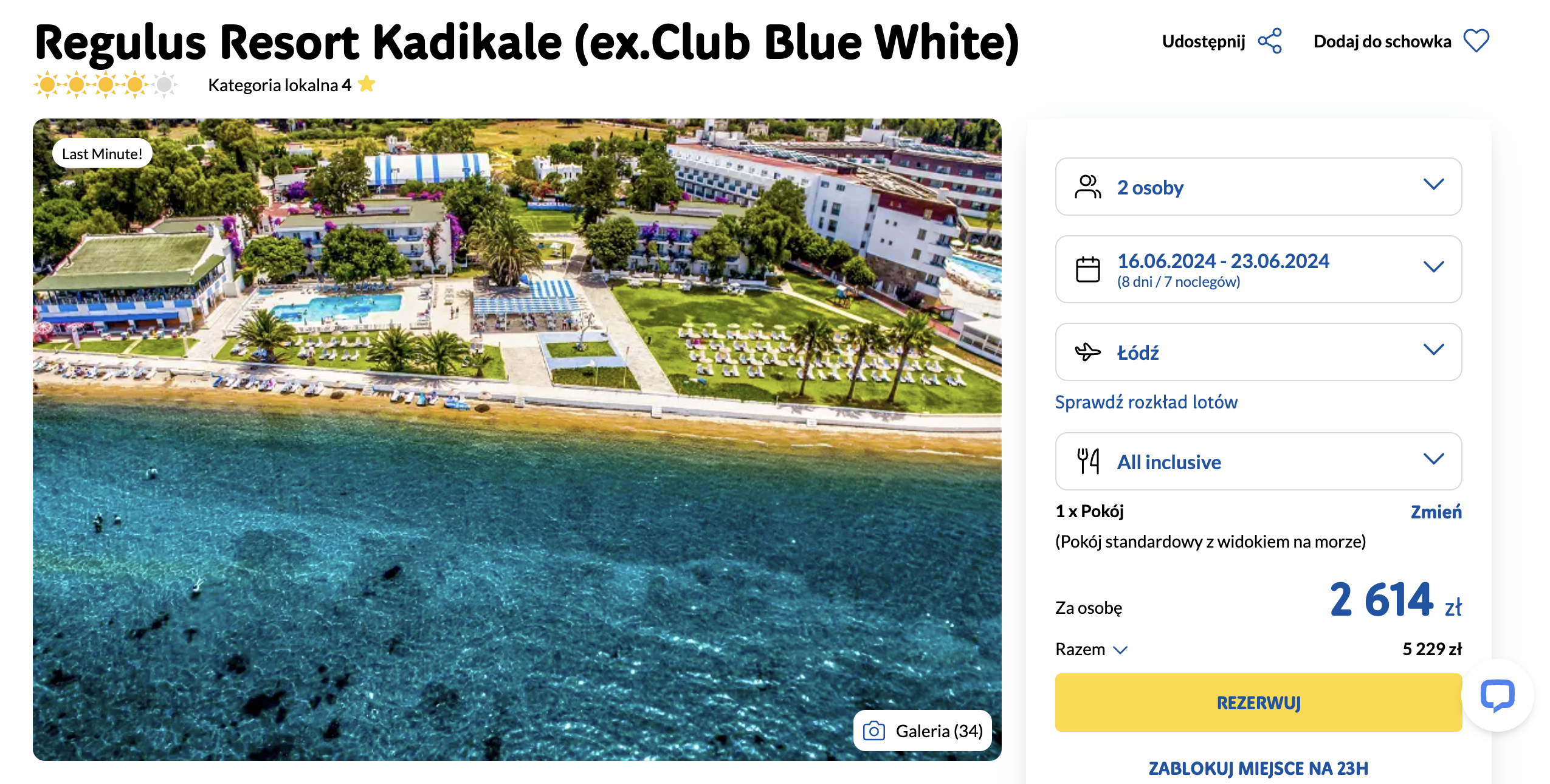 Na wczasy wybierzesz się w terminie 16-23 czerwca z 4 polskich miast. W cenę wliczony jest bagaż podręczny i rejestrowany, podstawowe ubezpieczenie, transfery i all inclusive.