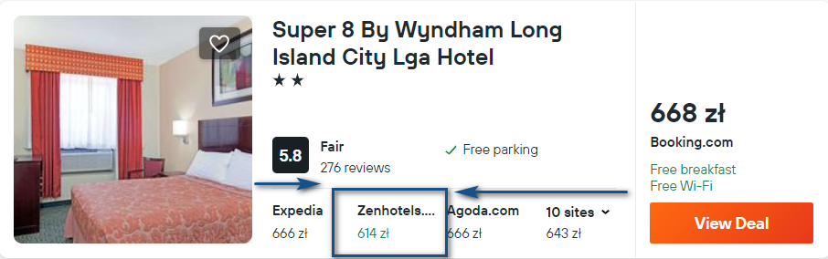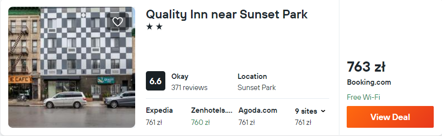 Tylko 1 PLN więcej kosztować cię będzie pobyt w hotelu Super 8 By Wyndham Long Island City Lga, który znajduje się w sąsiedztwie parku Socrates Sculpture. W cenie zapewnione są codzienne śniadania oraz dostęp do sieci WiFi.