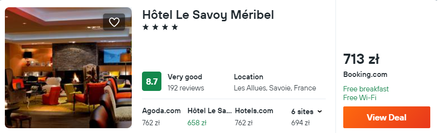 W pobliżu Parku Narodowego Vanoise rekomenduję 4* hotel Le Savoy Meribel. W cenę noclegów wliczono codzienne śniadania.