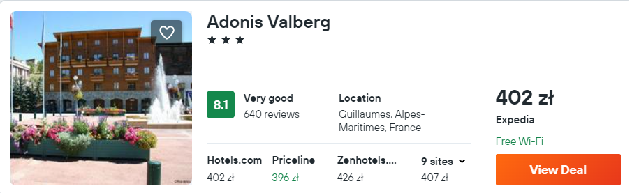 Natomiast w pobliżu Parku Narodowego Mercantour polecam 3* hotel Adonis Valberg. Na miejscu znajdziesz pokój z prywatną łazienką, TV i dostępem do WiFi.