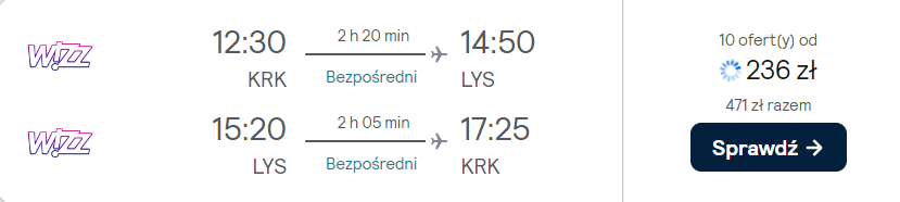 W podróż udasz się w terminie obejmującym weekend: 6-10 września (środa-niedziela). Czeka cię bezpośredni lot z lotniska w Krakowie, realizowany na pokładzie samolotu linii lotniczej Wizz Air. Po wylądowaniu w Lyonie od razu wypożycz samochód, który ułatwi ci odkrywanie Alp.