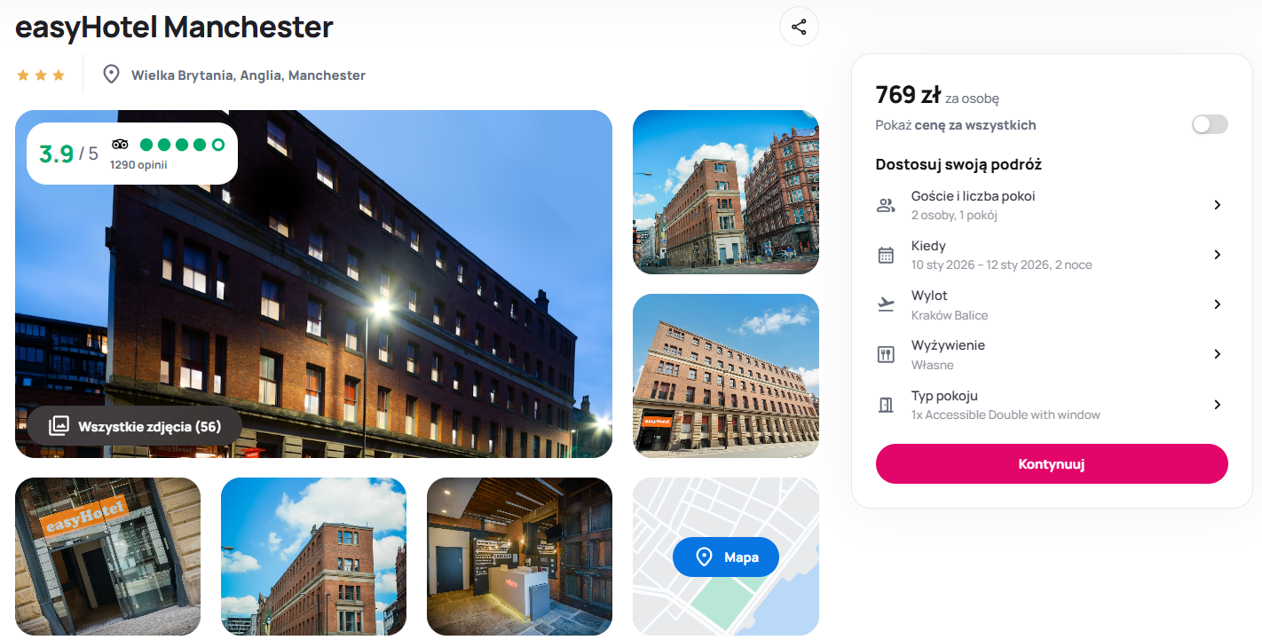 W Manchesterze zatrzymasz się w 3* easyHotel Manchester, który od dworca Manchester Piccadilly oddalony jest o 5 minut spokojnego spaceru. Z przystanku Piccadilly Gardens łatwo i wygodnie dojedziesz pod Old Trafford.