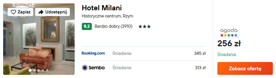 W Rzymie zatrzymasz się w hotelu Milani, który znajduje się blisko dworca Roma Termini, co stanowi idealną bazę do zwiedzania miasta. W cenę pobytu wliczone jest śniadanie.