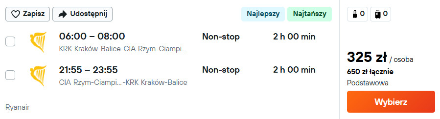 Do stolicy Włoch wylecisz w czwartek rano (22 stycznia) z Krakowa, lotniska w Modlinie lub Wrocławia. W drogę powrotną do Polski wyruszysz w piątek (23 stycznia), a odloty zaplanowane są na popołudnie lub wieczór. W obie strony podróżować będziesz linią Ryanair z bagażem podręcznym.