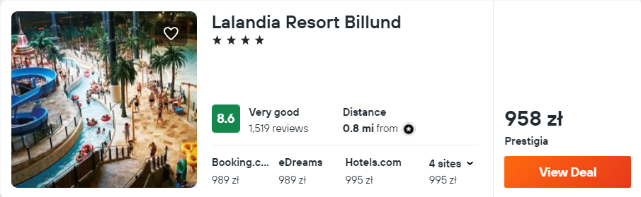 Chciałbyś zatrzymać się w słynnym kompleksie Lalandia? W takim razie postaw na noclegi w 4* resorcie, w którym otrzymasz dostęp do komfortowo urządzonego pokoju z dostępem do WiFi i restauracji. Co więcej, goście mają darmowy wstęp do parku wodnego Aquadome.