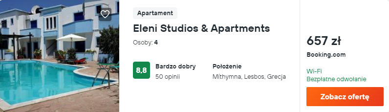 Urlop spędzicie w kameralnym, rodzinnym pensjonacie Eleni Studios & Apartments. Obiekt cieszy się bardzo dobrymi opiniami dotychczasowych podróżnych, a najbliższa plaża znajduje się w odległości ok. 450 m.