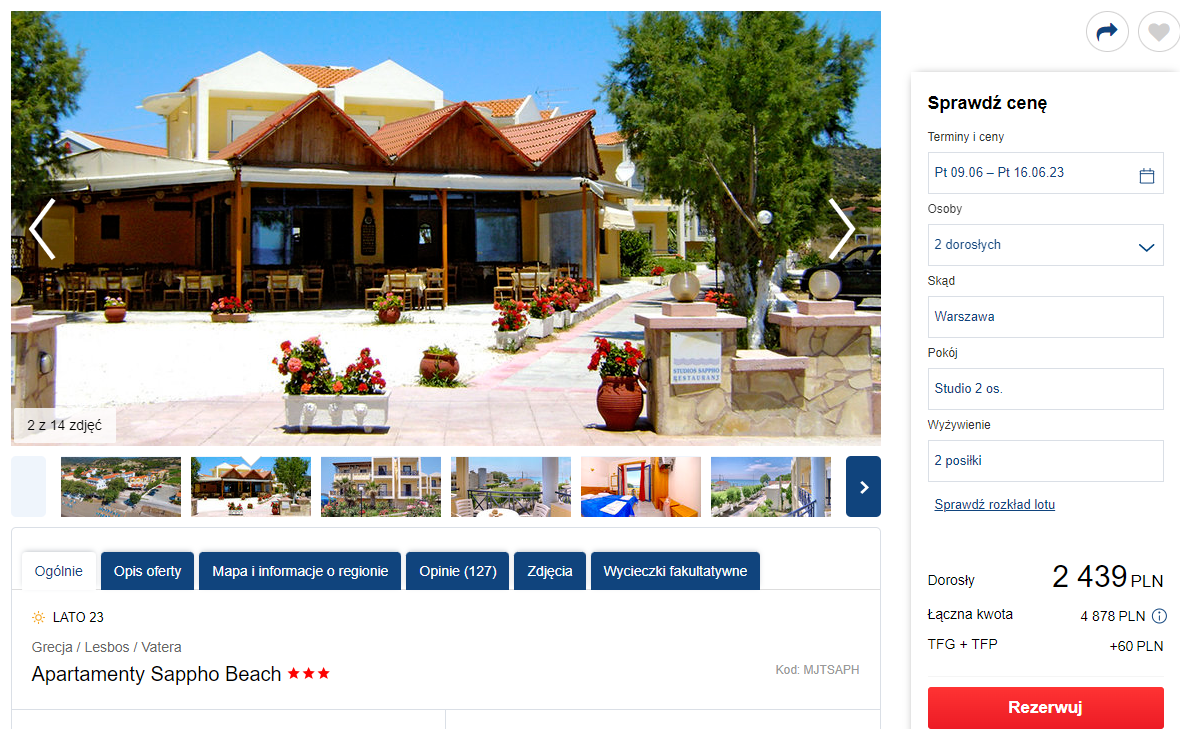 Urlop w Grecji zaplanowany został w terminie 9 – 16 czerwca. Na Lesbos polecisz bezpośrednio z Warszawy, a w cenę pakietu wliczono podróż z bagażem rejestrowanym (nadawanym do luku).