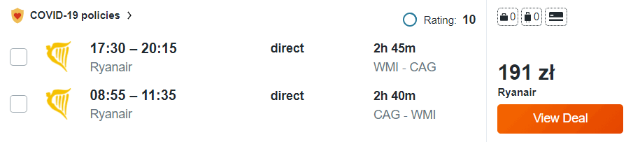 Na Sardynię udacie się w terminie 17-21 października (sobota-środa). Polecicie na pokładzie samolotów Ryanair, a bilety w podanej przeze mnie cenie możecie nabyć bez konieczności posiadania członkostwa w jakimkolwiek zniżkowym klubie. Waszą podróż częściowo odbędziecie w weekend, co pozwoli zaoszczędzić cenne dni urlopowe.