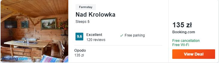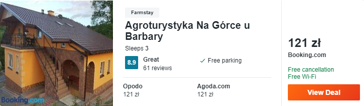 Dowiedzcie się więcej o tym hoteluAgroturystyka Na Górce u Barbary położona jest w miejscowości Lesko. Na miejscu dostępny jest plac zabaw i sprzęt do grillowania. Możecie bez opłat odwołać rezerwację do tygodnia przed przyjazdem.