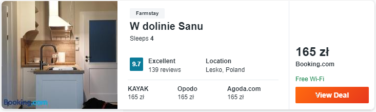 W poniższym zestawieniu znajdziecie noclegi w świetnie ocenianych przez dotychczasowych gości pensjonatach, apartamentach oraz willach. Na wycieczkę w Bieszczady możecie wybrać się w listopadzie, np. na weekend (sobota-niedziela). Pobyt w Ustrzykach Dolnych, a może relaks w okolicy jeziora Solińskiego? Wybierzcie sami!