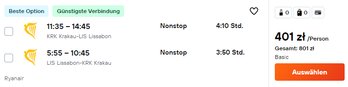 Do Lizbony udasz się w dogodnym terminie obejmującym weekend (piątek – poniedziałek) 13 – 16 grudnia. Czeka cię bezpośredni lot z Krakowa linią Ryanair. W cenie możesz zabrać bagaż podręczny.