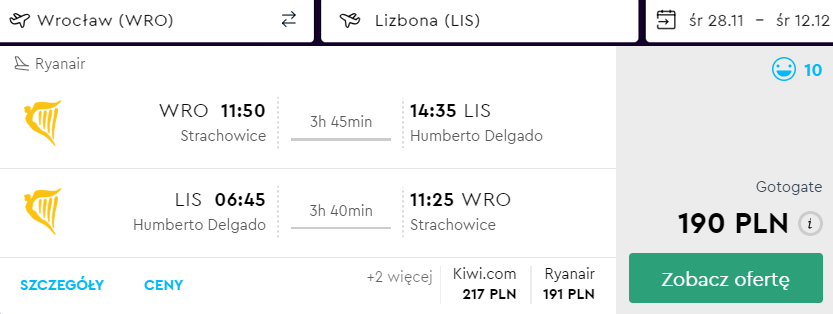 Przeloty realizowane są na pokładzie linii lotniczej Ryanair.