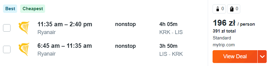 Na wycieczkę udacie się w terminie obejmującym ostatni weekend lutego. Do Lizbony wylecicie w piątek (25.2) z krakowskiego lotniska w Balicach, a do krajów wrócicie w poniedziałek (28.2). W obie strony podróżować będziecie na pokładach samolotów linii Ryanair z wliczony małym bagażem podręcznym.