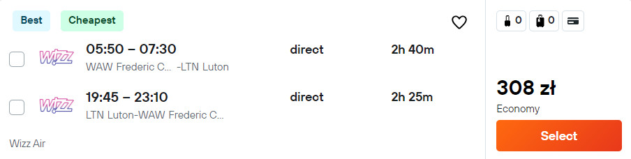 Warszawa – Londyn Luton – Warszawa »