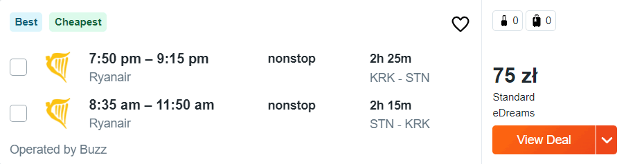 Kraków – Londyn Stansted – Kraków »