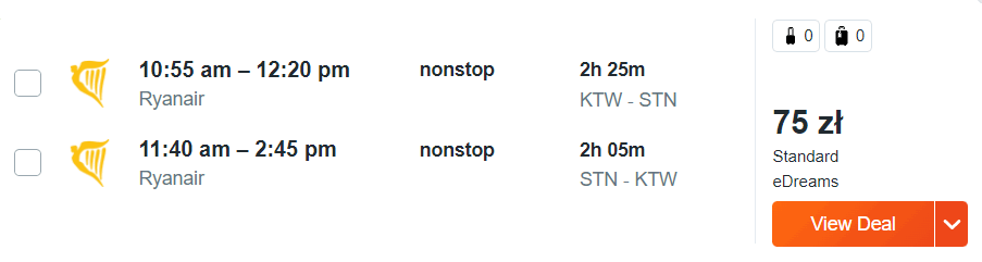 Katowice – Londyn Stansted – Katowice »