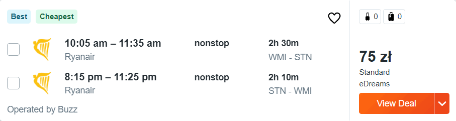 Warszawa Modlin – Londyn Stansted – Warszawa Modlin »