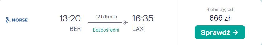 Wyjazd do USA składa się z trzech przelotów. Pierwszym jest bezpośrednie lot (14.10) do Hollywood z portu lotniczego Berlin Brandenburg, który odbędziecie na pokładzie samolotu linii Norse Atlantic Airways. Z Los Angeles do Nowego Jorku polecicie bezpośrednio 20 października – połączenie to obsługiwane jest przez linię Spirit Airlines.
