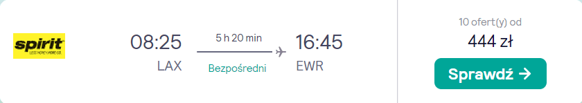 Los Angeles – Nowy Jork (lotnisko EWR) 20.10