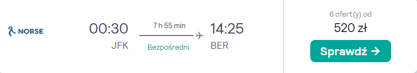 Natomiast do stolicy Niemiec wrócicie z Wielkiego Jabłka (25.10). Także w tym przypadku jest to bezpośrednie połączenie, które ponownie odbędziecie się na pokładzie samolotu linii Norse Atlantic Airways. Bez dodatkowych kosztów do Stanów Zjednoczonych udacie się tylko z małym bagażem podręcznym.