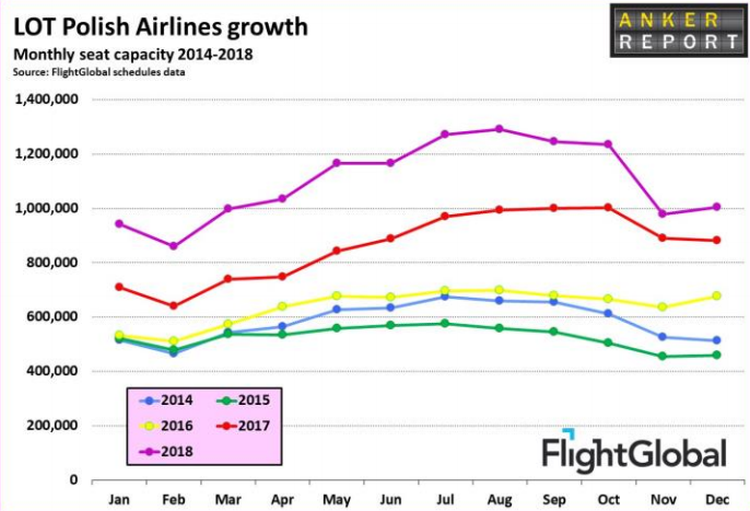 Ten ciekawy raport znajdujemy w branżowym piśmie „Anker Report”. Powołuje się on na analizę serwisu FlightGlobal, który przanalizował liczbę miejsc oferowanych przez 40 największych linii lotniczych w Europie w sezonie letnim, czyli w okresie od kwietnia do końca września tego roku. Porównując te liczby z danymi z zeszłego roku widać wyraźnie, że LOT jest najszybciej rosnącym przewoźnikie w Europie: w sezonie letnim liczba oferowanych miejsc zwiększyła się w skali roku aż o 30,5 proc.