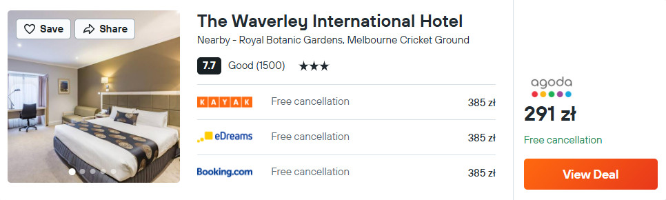 W Melbourne proponuję ci noclegi w 3* hotelu The Waverley International. W cenie zapewniony będziesz miał dostęp do sieci WiFi oraz bezpłatny parking.
