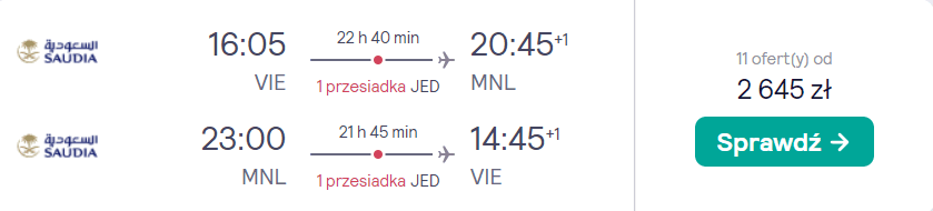 Podróż do Azji rozpoczniesz i zakończysz w porcie lotniczym Wiedeń-Schwechat. W obie strony polecisz na pokładach samolotów linii Saudia z wliczonymi dwiema sztukami bagażu rejestrowanego (nadawanymi do luku), bagażem podręcznym oraz przedmiotem osobistym (mały plecak lub damska torebka).