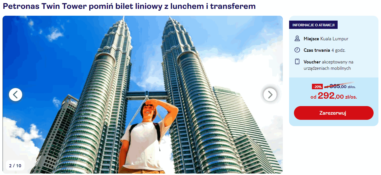 Wizyta na wieżach Petronas to obowiązkowy punkt zwiedzania stolicy Malezji. Nie trać czasu na stanie w kolejce i już dziś zadbaj o bilet wstępu.