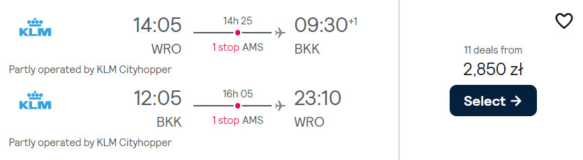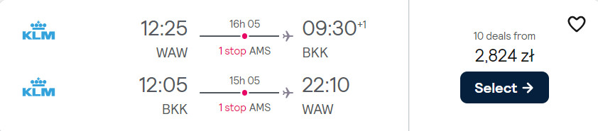 W obie strony polecisz na pokładach samolotów linii KLM z przesiadkami w Amsterdamie. Bez dodatkowych kosztów na wycieczkę zabrać możesz bagaż podręczny oraz przedmiot osobisty (mały plecak lub damską torebkę).