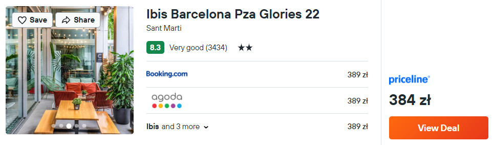 W Barcelonie proponuję ci noclegi w hotelu Ibis Barcelona Pza Glories 22, który znajduje się nieopodal Mirador Torre Glòries. W każdym pokoju jest łazienka z prysznicem oraz podstawowymi przyborami toaletowymi.