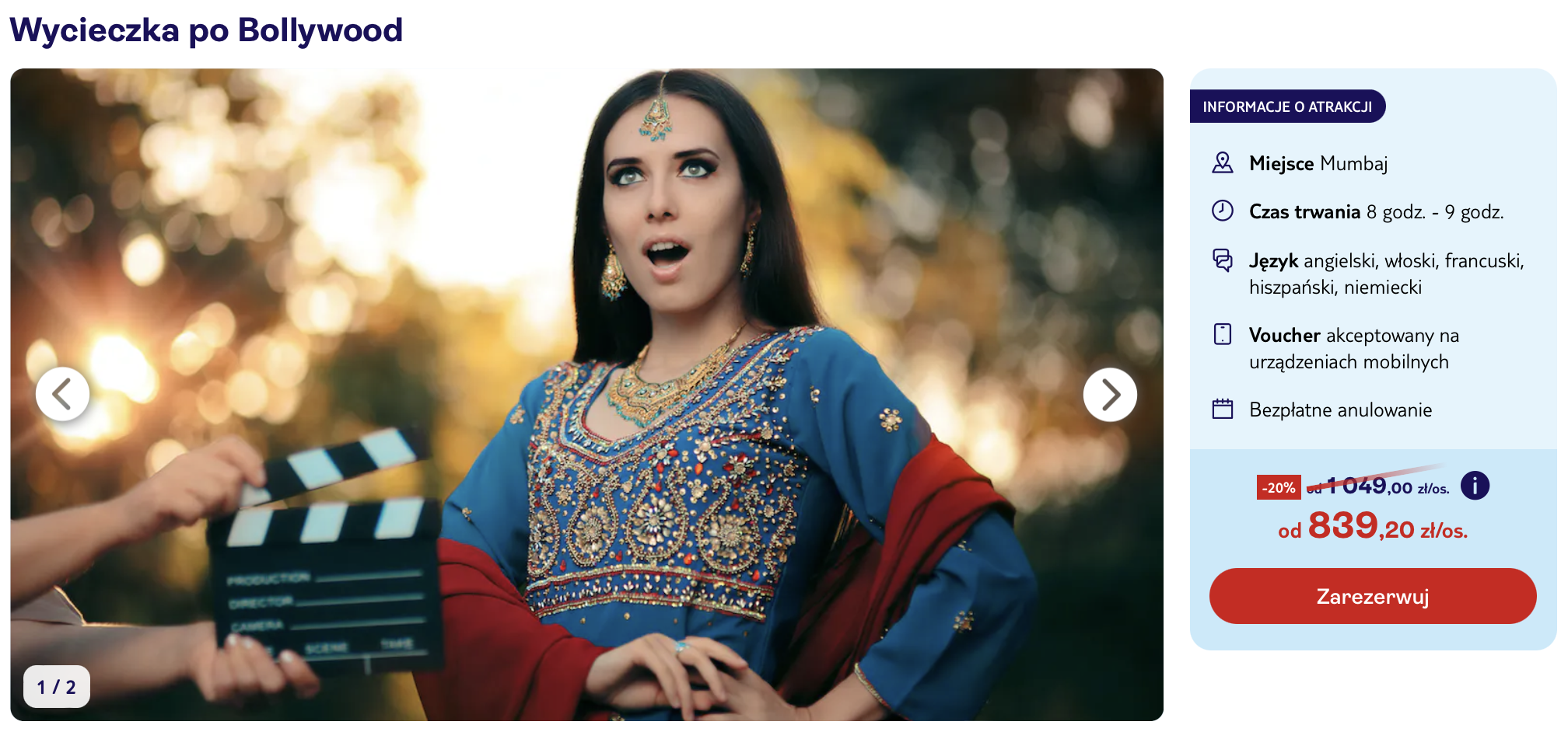 Zapisz się na wycieczkę po Bollywood, aby zajrzeć do świata indyjskiego kina. Zobacz legendarne studia, działające plany filmowe, efekty specjalne i pokaz tańca.
