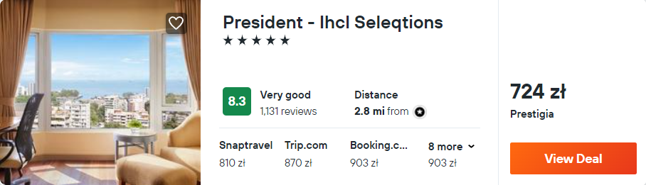 Jesteście w stanie wydać nieco więcej na zakwaterowanie? 5* hotel President-Ihcl Seleqtions znajduje się nieopodal Muzeum Księcia Walii Indii Zachodnich. Także tutaj każdy pokój wyposażony jest w klimatyzację, lodówkę, telewizor LCD oraz zestaw do parzenia kawy lub herbaty.