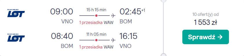 Tanie loty PLL LOT do Bombaju za 1553 PLN. Podróże z Wilna