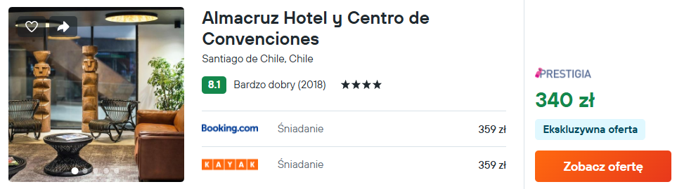 Alternatywnie polecam także pobyt w 4* hotelu Park Plaza Santiago. W cenę zakwaterowania wliczone są codzienne śniadania.