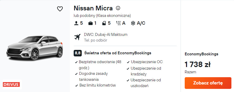 Chętnie udasz się na zwiedzanie innych emiratów, a może masz ochotę wybrać się na wycieczkę do Omanu? W takim razie rozważ wypożyczenie samochodu na miejscu. Mając do swojej dyspozycji auto, łatwo i wygodnie dojedziesz w różne rejony Półwyspu Arabskiego.
