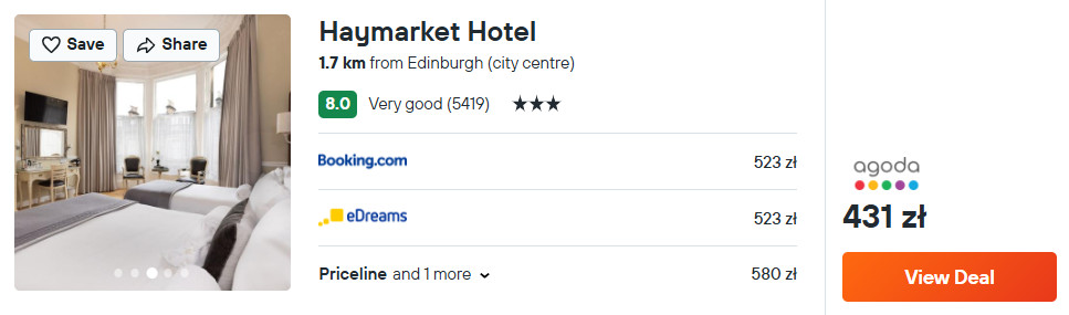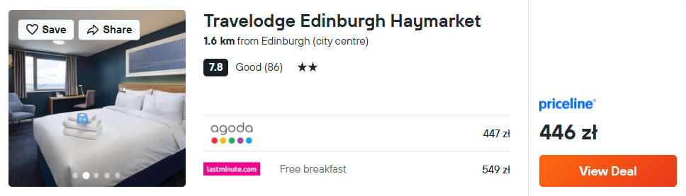 W Edynburgu proponuję ci noclegi w 3* hotelu Haymarket, który znajduje się w pobliżu restauracji, barów oraz tuż obok teatru Theatre Royal Haymarket. W łazience jest wanna oraz podstawowe przybory toaletowe.