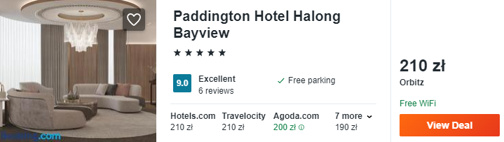 Natomiast w pobliżu słynnej zatoki Ha Long proponuję wam zakwaterowanie w 5* hotelu Paddington. To luksusowy obiekt, który zlokalizowany jest w pobliżu plaży. Znajdziecie tam również basen i strefę spa.