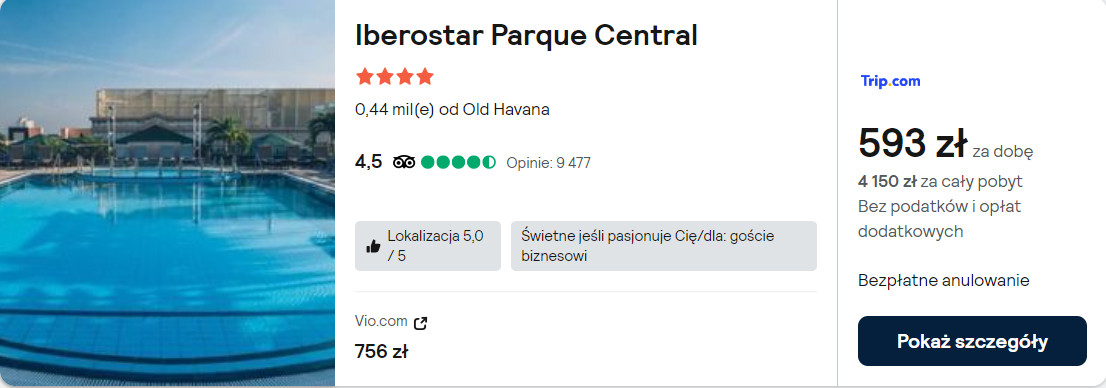 Możesz także rozważyć pobyt w 4* hotelu Iberostar Parque Central z odkrytym basenem na dachu! Znajduje się on w ścisłym centrum miasta, w sąsiedztwie National Capitol of Cuba.