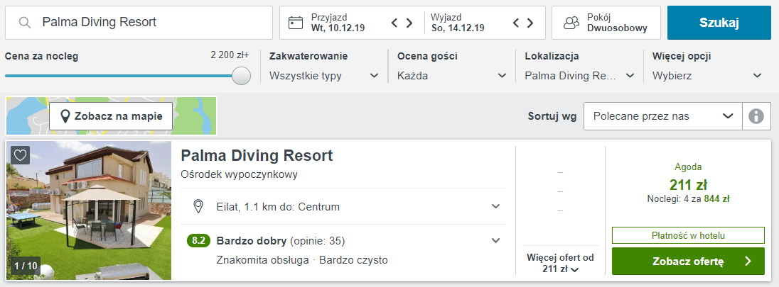 W Izraelu proponuję wam zakwaterowanie w hotelu Palma Diving Resort, który leży 10 minut spacerem od plaży. Apartamenty są klimatyzowane oraz wyposażone w telewizor LCD z dostępem do kanałów satelitarnych oraz aneks kuchenny z kuchenką mikrofalową, lodówką i czajnikiem. Do wyboru macie pokoje z prywatną lub wspólną łazienką.