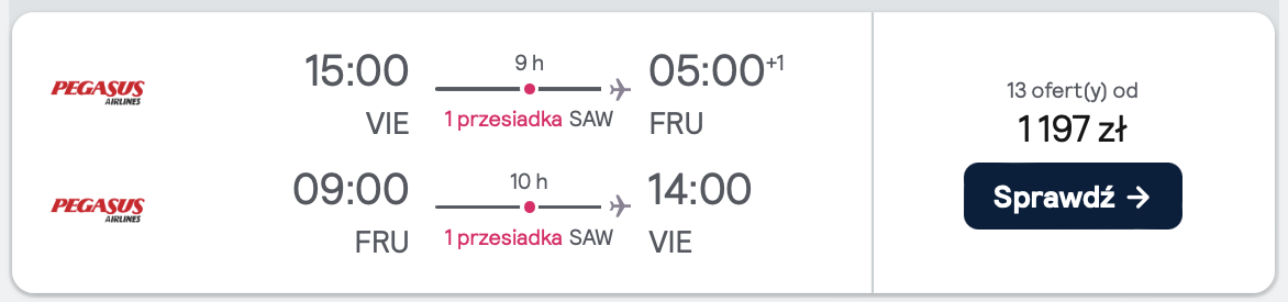 Na wycieczkę polecisz na pokładzie samolotów linii lotniczych Pegasus Airlines z lotniska w Berlinie, Pradze lub Wiedniu. Po drodze czekają cię przesiadki w Stambule. Dostępnych jest kilka terminów od stycznia do marca. Wylot z zagranicy? Sprawdźcie nasz artykuł, w którym podpowiadamy, jak tanio dostać się do stolicy Niemiec, Czech i Austrii.