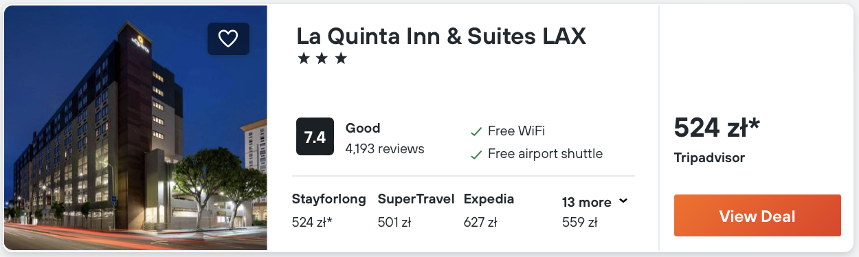 Do Los Angeles wybrać się możesz w terminach pomiędzy styczniem a marcem przyszłego roku. Kilka przykładowych dat znajdziesz wypisanych poniżej w tekście. Podróż do USA za 1977 PLN jest możliwa dzięki dwóm oddzielnym rezerwacjom przelotów.