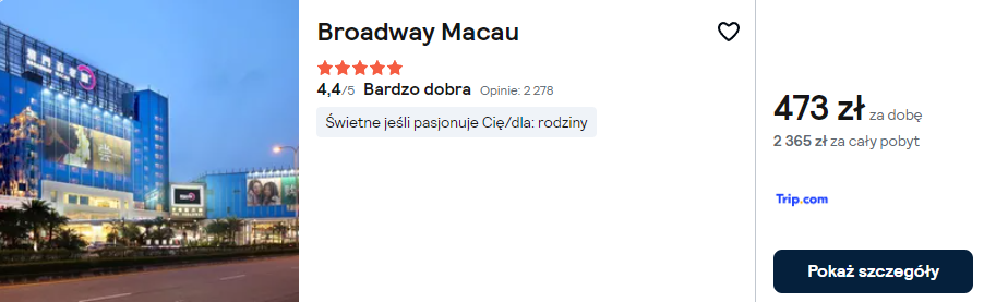Loty (z bagażem nadawanym) do Makau z Warszawy za 2165 PLN. Wiele terminów
