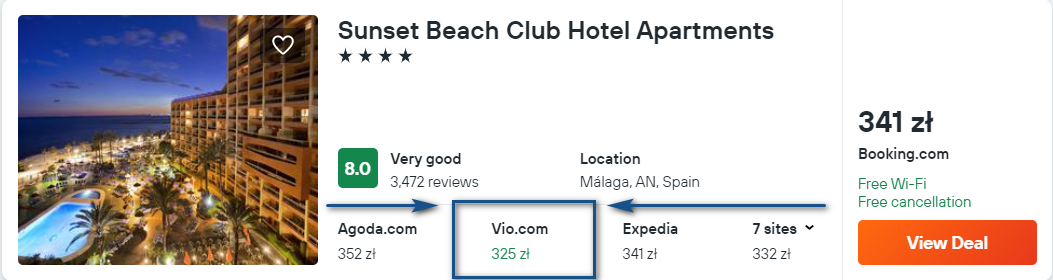Na Costa del Sol proponuję ci noclegi w 4* hotelu apartamentowym Sunset Beach Club, który znajduje się w odległości 100 metrów od plaży w miejscowości Benalmádena. Na terenie kompleksu mieszczą się 3 baseny, dobrze wyposażone centrum fitness oraz sklep.
