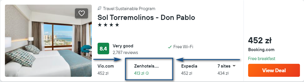 Jeżeli jesteś w stanie wydać nieco więcej na zakwaterowanie, to postaw na pobyt w 4* hotelu Sol – Don Pablo, który mieści się w kurorcie Torremolinos. Obiekt od plaży Bajondillo oddalony jest o jedyne 200 metrów. Na miejscu czekają na ciebie 3 baseny (2 odkryte i 1 kryty). W cenie zapewnione są codzienne śniadania oraz dostęp do sieci WiFi.