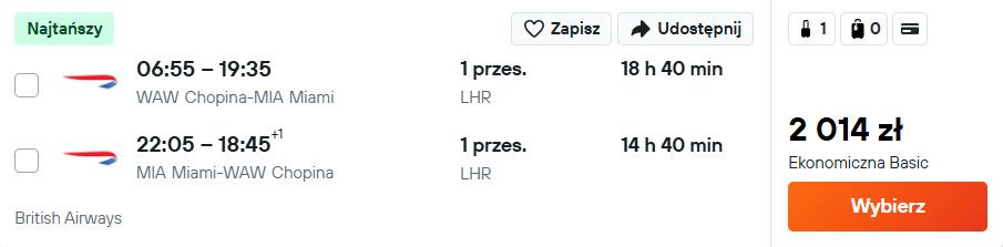 Do Miami udasz się z Warszawy w terminach pomiędzy listopadem 2024, a marcem przyszłego roku. W obie strony polecisz liniami British Airways oraz American Airlines z wygodnymi przesiadkami w Londynie. Do USA udasz się z bagażem podręcznym i przedmiotem osobistym.