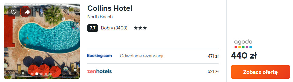 Niewiele więcej kosztować cię będzie zakwaterowanie w 3* hotelu Collins z odkrytym basenem. W każdym pokoju jest część wypoczynkowa, sypialna oraz łazienka z prysznicem.
