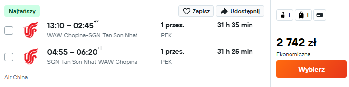 Do Wietnamu udasz się z Warszawy. Czeka cię podróż z lotniska im. Fryderyka Chopina do miasta Ho Chi Minh z Air China. Po drodze przesiądziesz się w Pekinie.