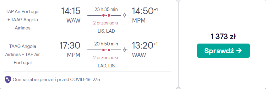 W podróż do Afryki udacie się z warszawskiego lotniska im. Chopina w terminach pomiędzy październikiem a kwietniem przyszłego roku. Do Maputo polecicie na pokładzie samolotów linii lotniczych TAP Air Portugal oraz TAAG Angola Airlines.