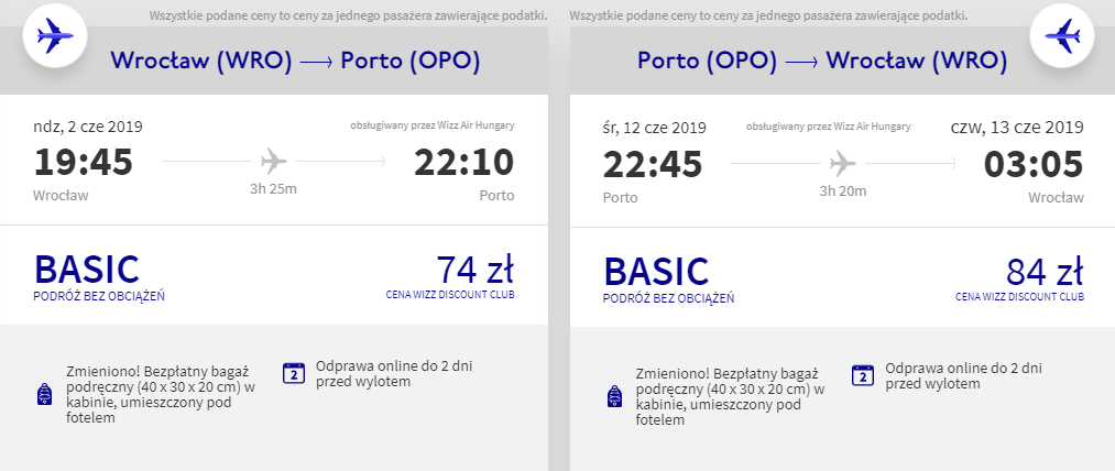Przeloty realizowane są na pokładzie węgierskiej linii lotniczej Wizz Air. Aby uzyskać taką cenę, musisz być członkiem Wizz Discount Club. W porto rozważcie pobyt w znanej sieci hoteli Ibis.
