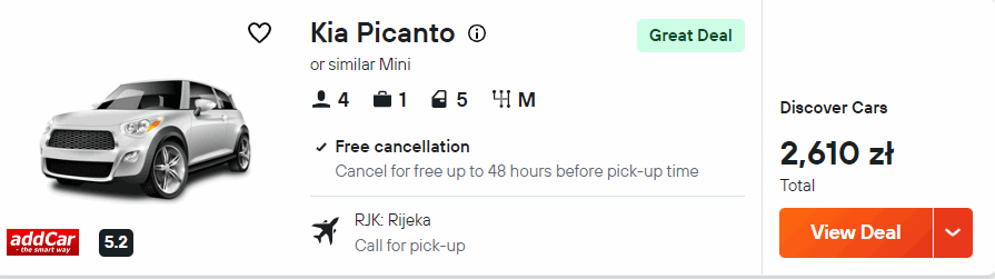 Jeżeli macie w planach zwiedzić całe chorwackie wybrzeże, to pomyślcie o wypożyczeniu samochodu zaraz po przylocie do Rijeki.